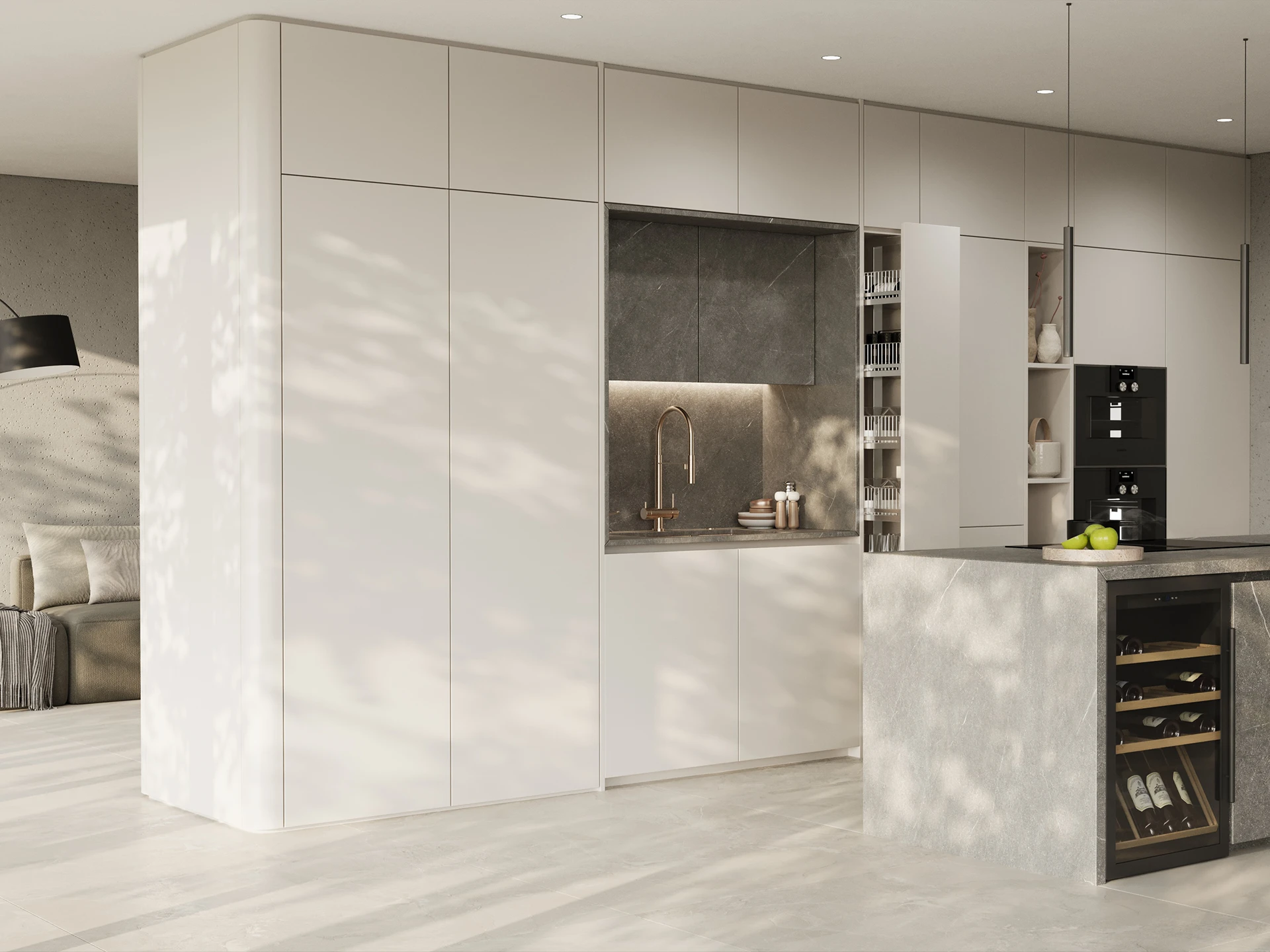 A fusion of white cabinetry and cool grey stone, Polar Slate is a bright, minimalist design for lovers of modern simplicity. Its neutral palette ensures a seamless fit in any home style.