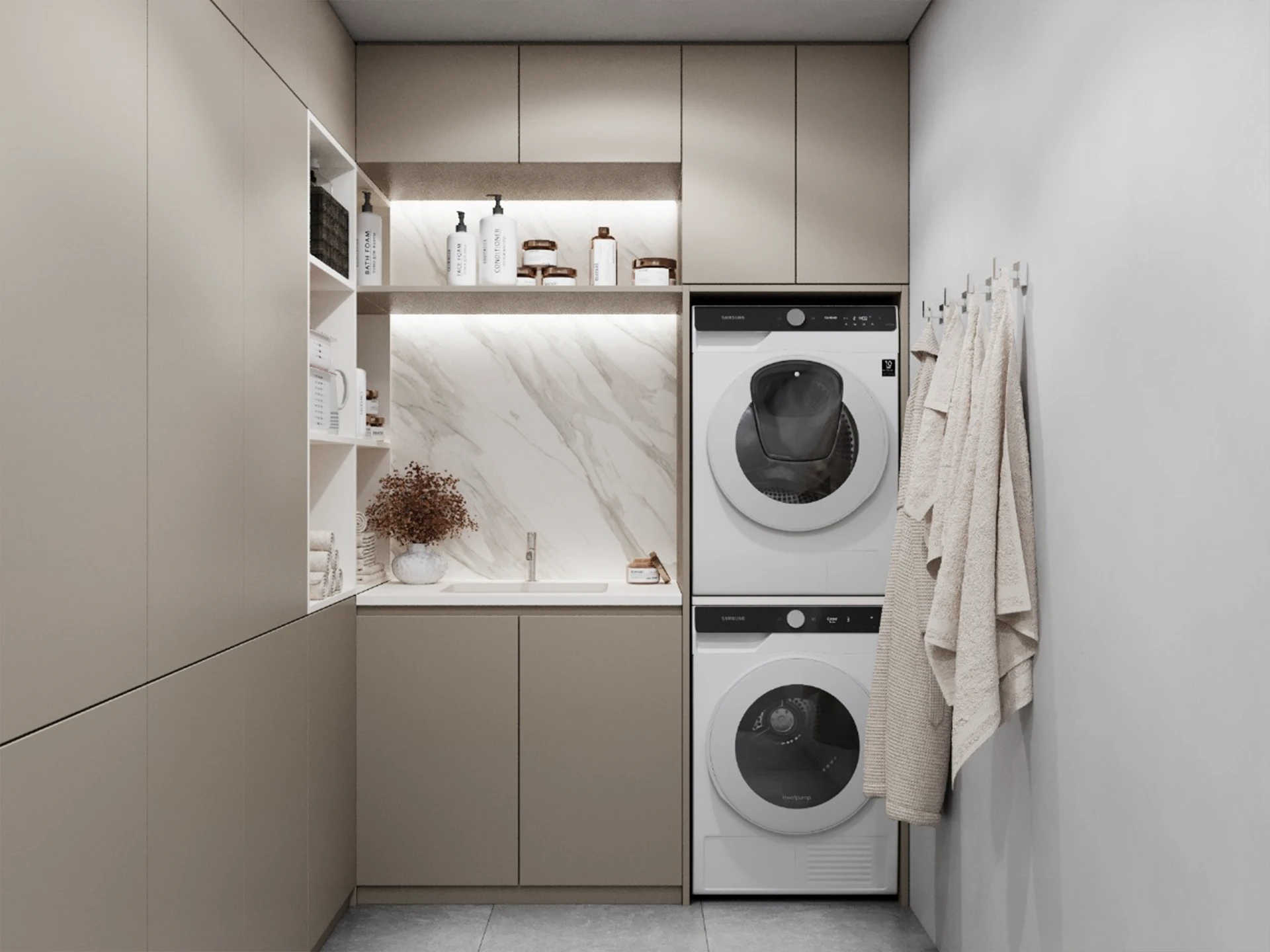 Our custom laundry designs make everyday tasks easier and more stylish. With clever storage, durable finishes, and seamless layouts, we create functional spaces that keep your home organised while looking beautifully refined.
